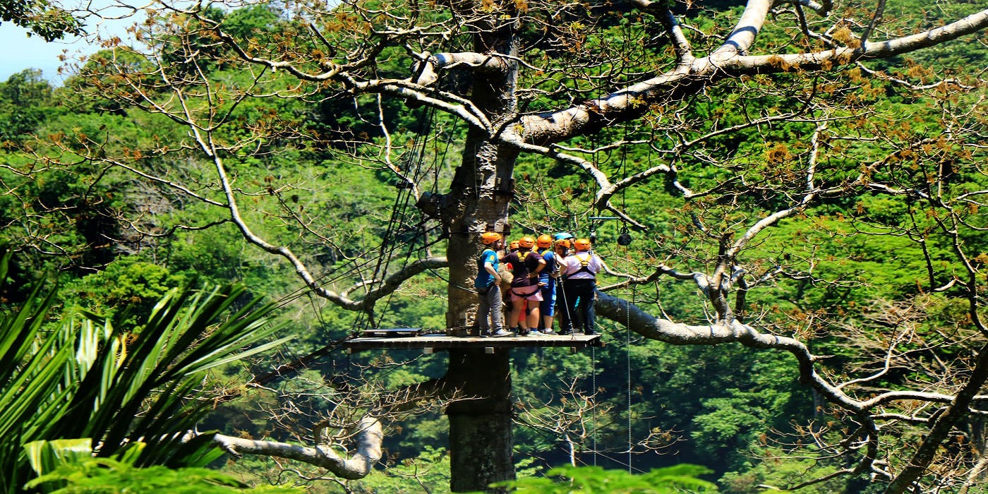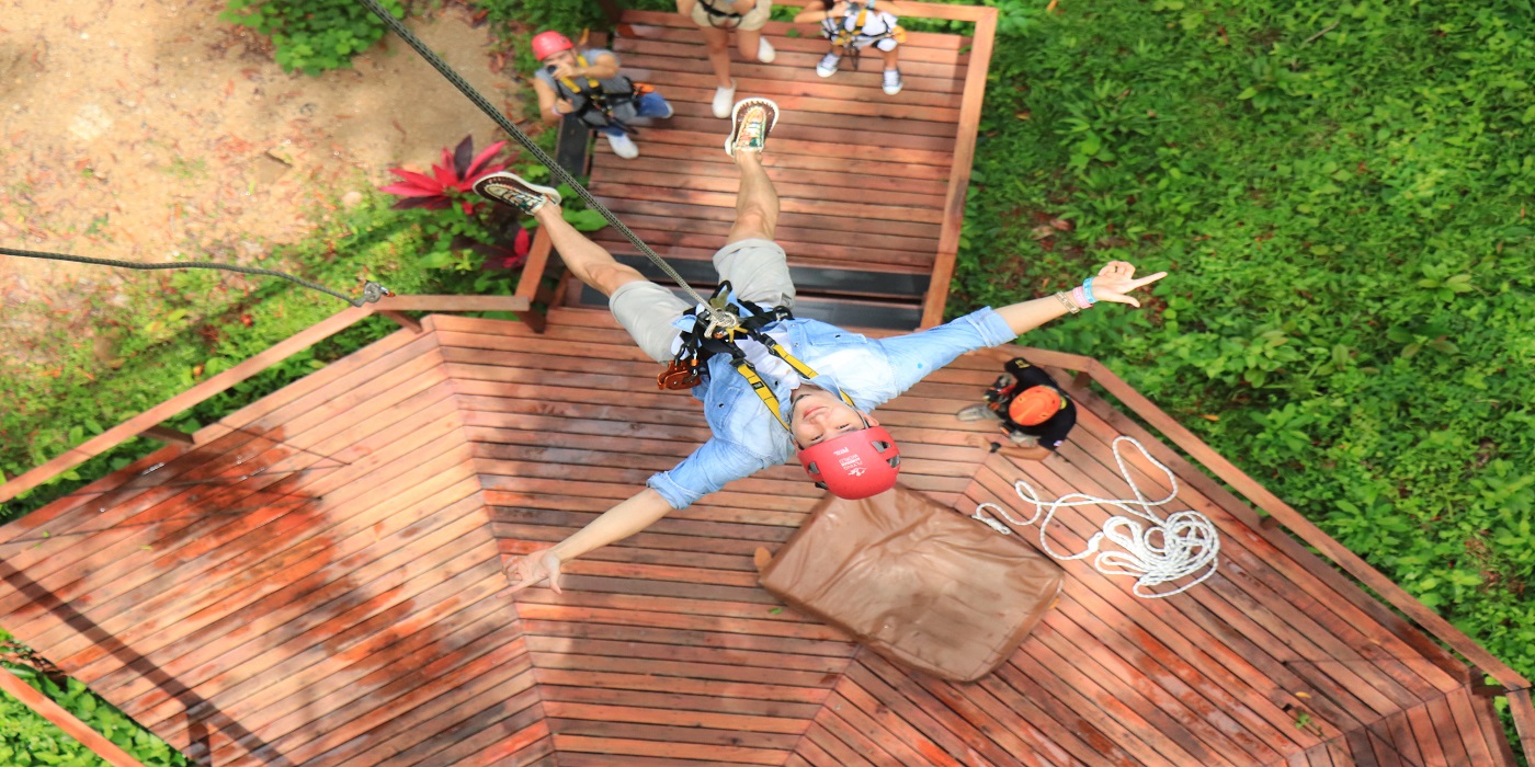 • 9 ziplines, 2 sky bridges, 3 abseil points, 1 spiral staircase, and 1 Dual Zipline